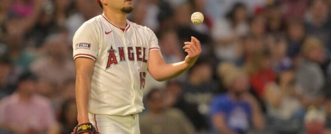Jul 24, 2025; Anaheim, California, USA; Los Angeles Angels starting [...]