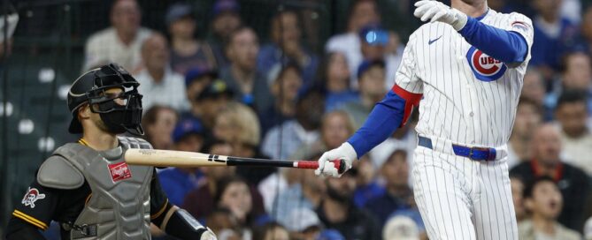 Jun 12, 2025; Chicago, Illinois, USA; Chicago Cubs center fielder [...]