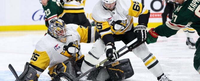 Oct 30, 2025; Saint Paul, Minnesota, USA; Pittsburgh Penguins goaltender [...]