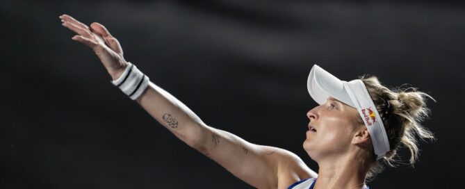 Nov 1, 2023; Cancun, Mexico; Marketa Vondrousova (CZE) tosses the [...]