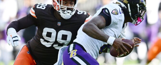 Oct 27, 2024; Cleveland, Ohio, USA; Cleveland Browns defensive end [...]
