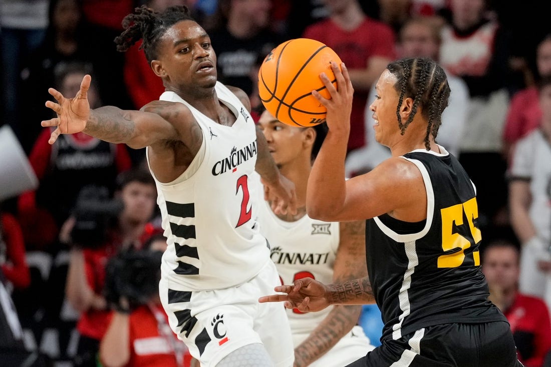 Cincinnati Bearcats guard Jizzle James (2) guards Arkansas-Pine Bluff Golden [...]