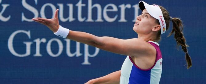 Elena Rybakina prepares a serve to Leylah Fernandez in the [...]
