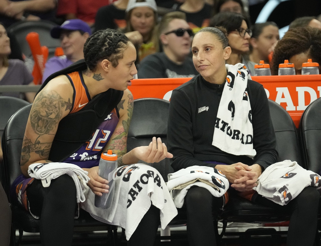 Phoenix Mercury center Brittney Griner (42) and guard Diana Taurasi [...]
