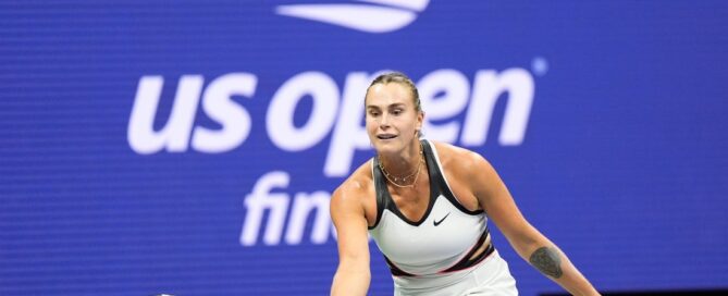 Sep 6, 2025; Flushing, NY, USA; Aryna Sabalenka hits a [...]