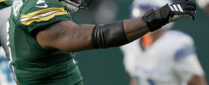 Green Bay Packers defensive end Micah Parsons (1) is shown [...]
