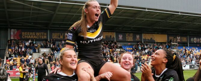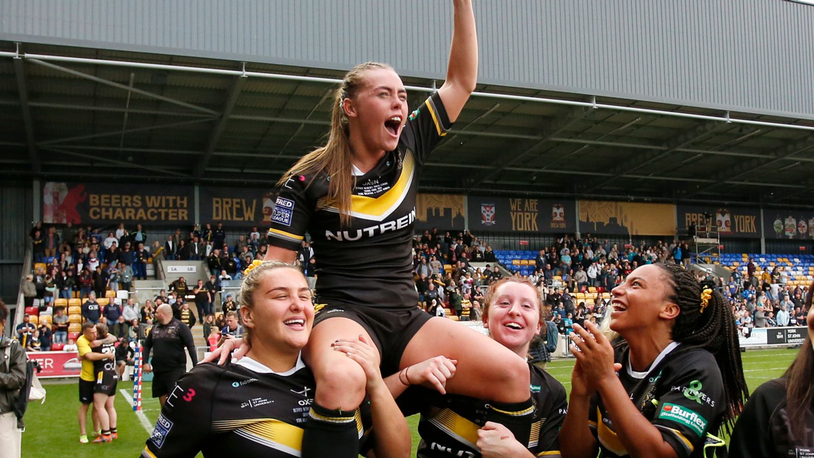 Lacey Owen is held aloft by team-mates after York's Grand [...]
