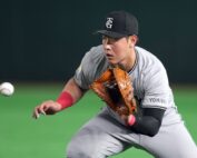 Mar 15, 2025; Bunkyo, Tokyo, Japan; Yomiuri Giants first baseman Kazuma Okamoto (25) fields a ground ball against the Los Angeles Dodgers during the fifth inning at Tokyo Dome. Mandatory Credit: Darren Yamashita-Imagn Images Slugger [...]