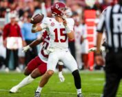 Oct 25, 2025; Columbia, South Carolina, USA; Alabama Crimson Tide quarterback Ty Simpson (15) passes against the South Carolina Gamecocks in the second half at Williams-Brice Stadium. Mandatory Credit: Jeff Blake-Imagn Images Alabama coach Kalen [...]
