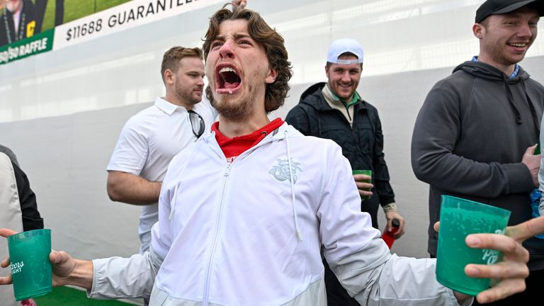 Fans queue for hours ahead of gates opening before running to get their vantage spot secure on the Stadium Hole, where one spectator was hospitalised after falling from one of the stands.