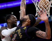 LOS ANGELES, CALIFORNIA - DECEMBER 18: dJulius Randle #30 of the New York Knicks reacts on his layup around Anthony Davis #3 of the Los Angeles Lakers during the first half at Crypto.com Arena on [...]