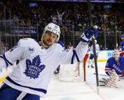 NEW YORK, NEW YORK - DECEMBER 12: Auston Matthews #34 of the Toronto Maple Leafs scores at 3:52 of the first period against Igor Shesterkin #31 of the New York Rangers at Madison Square Garden [...]
