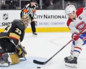 LAS VEGAS, NEVADA - OCTOBER 30: Nick Suzuki #14 of the Montreal Canadiens scores a shootout goal against Adin Hill #33 of the Vegas Golden Knights in overtime of their game at T-Mobile Arena on [...]