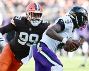 Oct 27, 2024; Cleveland, Ohio, USA; Cleveland Browns defensive end Za'Darius Smith (99) sacks Baltimore Ravens quarterback Lamar Jackson (8) during the second half at Huntington Bank Field. Mandatory Credit: Ken Blaze-Imagn Images The Detroit [...]