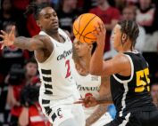 Cincinnati Bearcats guard Jizzle James (2) guards Arkansas-Pine Bluff Golden Lions guard Caleb Jones (55) in the second half of the NCAA mens basketball game between the Cincinnati Bearcats and the Arkansas-Pine Bluff Golden Lions [...]