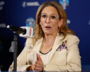Nov 22, 2024; Kansas City, Missouri, USA; National Womenís Soccer League commissioner Jessica Berman answers a question during a press conference ahead of the 2024 NWSL Championship match between the Orlando Pride and the Washington [...]